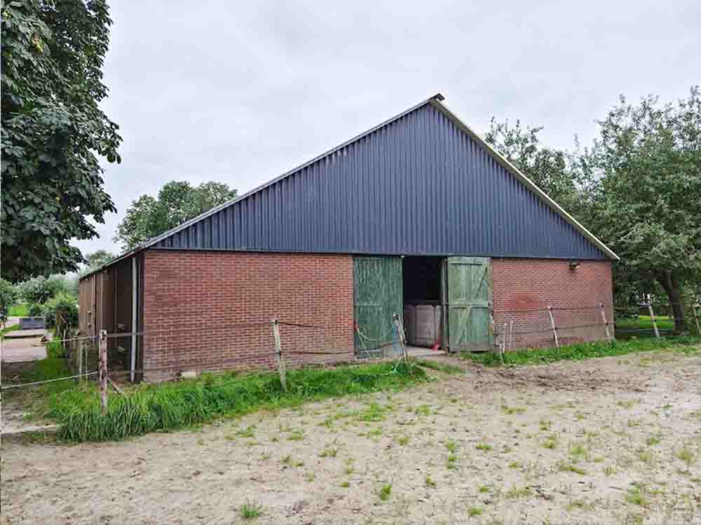 Omschrijving werkzaamheden: Deze schuur met praktijkruimte is nadat de asbestgolfplaten vakkundig zijn gesaneerd voorzien van geïsoleerde sandwichpanelen. In het dak zijn enkele geïsoleerde lichtplaten opgenomen voor een mooie lichtinval. Als goten is gekozen voor aluminium.